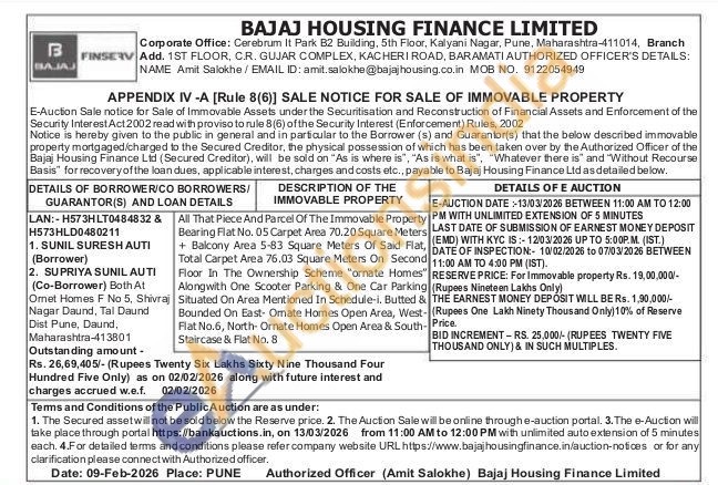 All That Piece And Parcel Of The Immovable Property Bearing Flat No. 05 Carpet Area 70.20 Square Meters + Balcony Area 5-83 Square Meters Of Said Flat, Total Carpet Area 76.03 Square Meters On Second Floor In The Ownership Scheme "ornate Homes" Alongwith One Scooter Parking & One Car Parking Situated On Area Mentioned In Schedule-i, Butted & Bounded On East- Omate Homes Open Area, West-Flat No.6, North- Ornate Homes Open Area & South-. Staircase & Flat No. 8