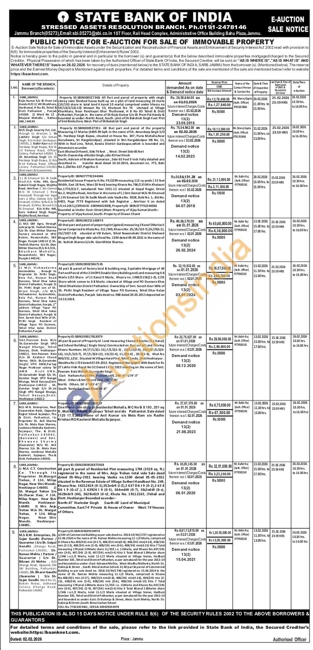 All part & parcel of PropertyId Land measuring 5 kanal 4 Marlas (5.2 Kanal) and School Building (Single Story) Constructed on that out of Land Bearing Khasra Numbers 34//7/1/2(1-15),7/2/2)1-5), 23/1/2(0-9), 36///15/2/2(0-14), 16/1/1(0-7), 37//1/2(0-13), 10//(3-4), 11/2(4-0), 20/1(1-9), Khat No 890/251,1252. Situated At Village Harsi Pind, Tehsil Tanda, DisttHoshiarpur. Wasikha No 1724 dated 07.09.2012. Registered Mortgaged With Bank For Rs 27 Lakhs Vide Rapat No 52 Dated 14.10.2023 standing on the name of Smt. Poonam Bala W/oSh. Gurwinder Singh
