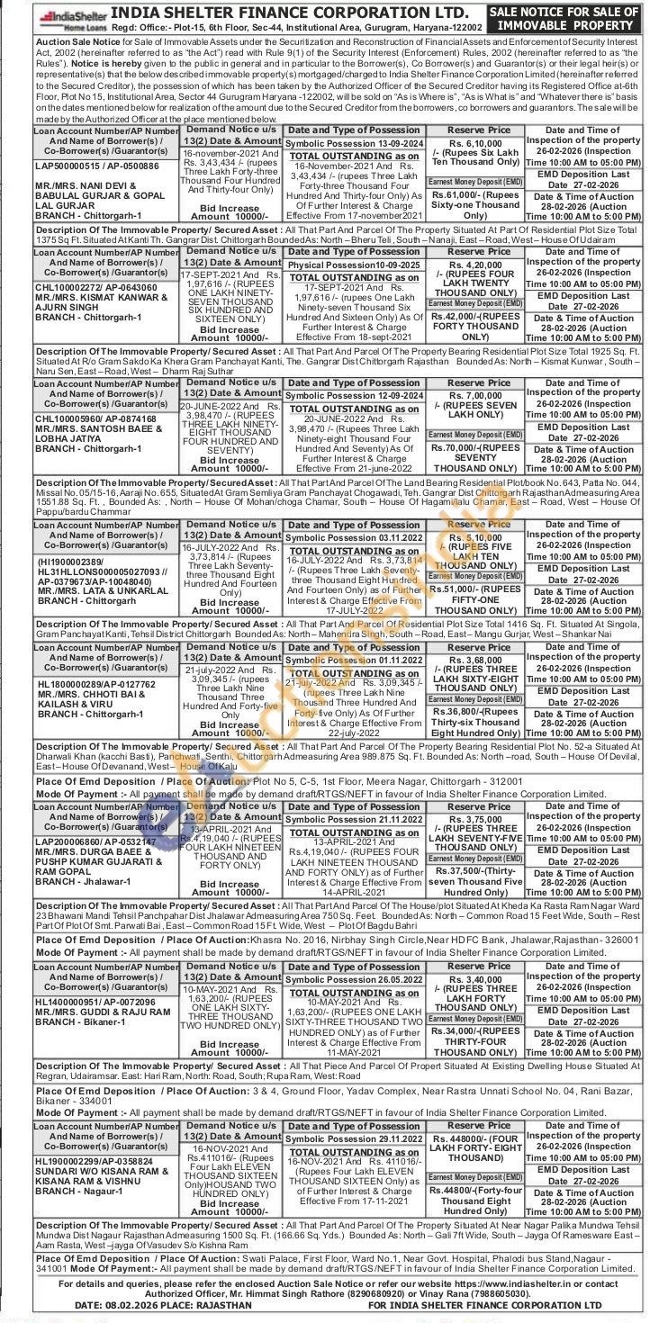 Description Of The Immovable Property/ Secured Asset: All That Piece And Parcel Of Propert Situated At Existing Dwelling House Situated At Regran, Udairamsar. East: Hari Ram, North: Road, South; Rupa Ram, West: Road
