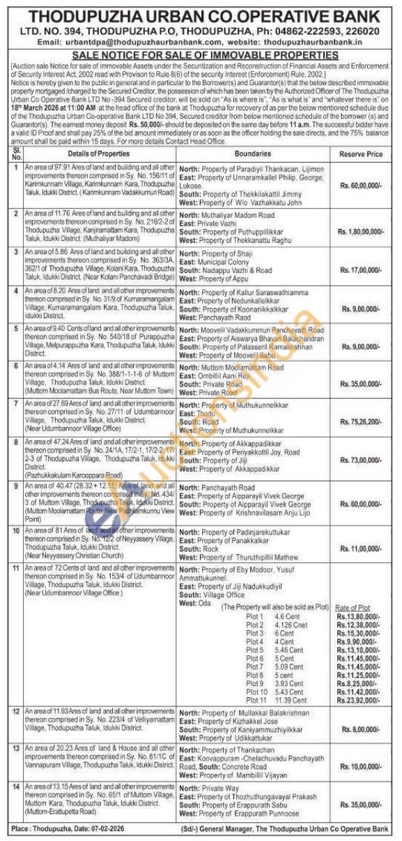 An area of 47.24 Ares of land and all other improvements thereon comprised in Sy. No. 24/1A, 17/2-1, 17/2-2, 17/2-3 of Thodupuzha Village, Thodupuzha Taluk, Idukki District (Pazhukkakulam Karooppara Road)