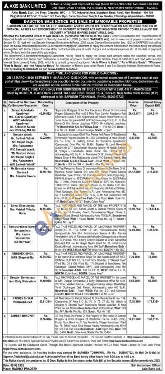 Mr. SAPNESH TOSHNIWAL : 9826017722 Or Mail On E-Mail id: Sapnesh. Toshniwal@axishank.com