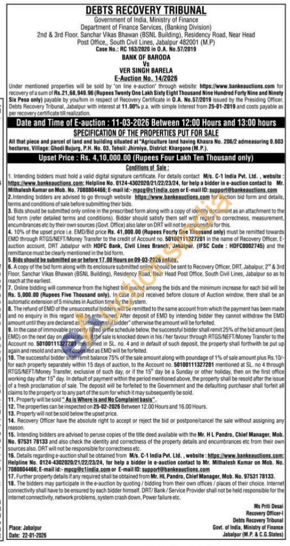 All that piece and parcel of land and building situated at "Agriculture land having Khasra No. 206/2 admeasuring 0.603 hectares, Village: Ghodi Bujurg, P.H. No. 03, Tehsil: Jhirniya, District: Khargone (M.P.).