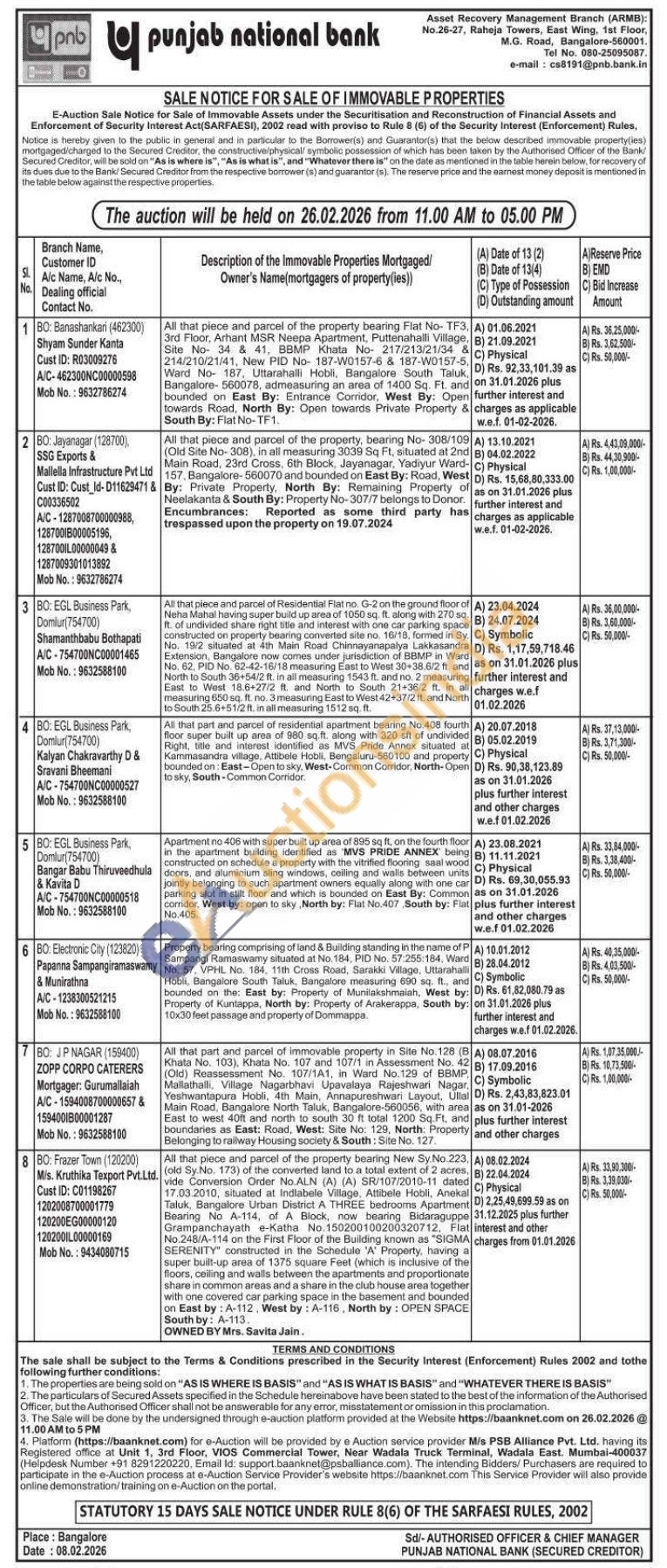 All that part and parcel of residential apartment bearing No. 408 fourth floor super built up area of 980 sq.ft. along with 320 sft of undivided Right, title and interest identified as MVS Pride Annex situated at Kammasandra village, Attibele Hobli, Bengaluru-560100 and property bounded on: East-Open to sky, West-Comman Condor, North-Open to sky, South-Common Corridor