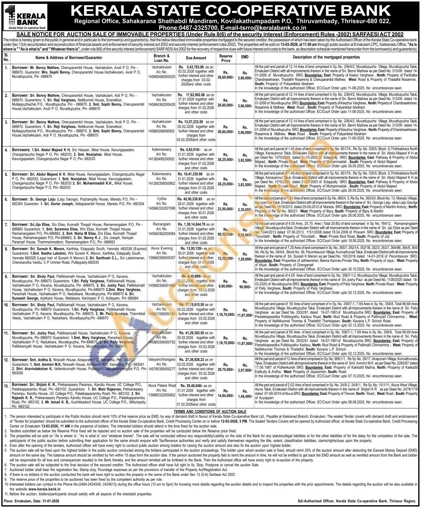 All the part and parcel of 2.02 Ares of land comprised in Sy. No. 24/8-2, 24/8-1, Re Sy. No. 10/1/11, Aluva West Village, Aluva Taluk, Emakulam District with all improvements thereon in the name of Shijish KR as per Deed No. 2478/1/19 dated 07-09-2019 of Aluva SRO. Boundaries: East: Property of Thevan, North: Road; West: Road, South: Property of Ayyappan. In the knowledge of the authorized Officer, EC/Court Order upto 06.08.2025, No encumbrances seen.