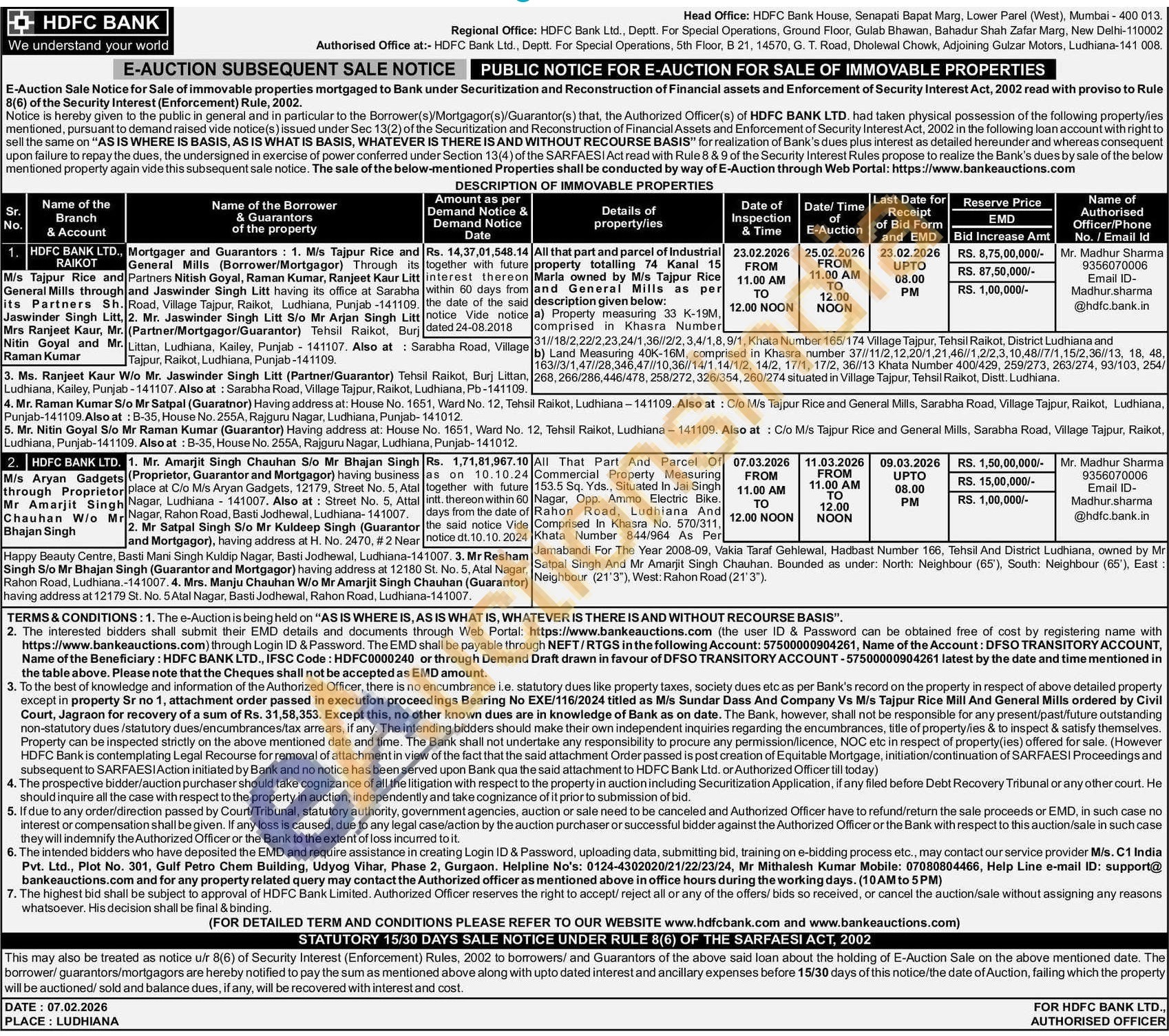 All That Part And Parcel Of Commercial Property Measuring 153.5 Sq. Yds., Situated In Jai Singh Nagar, Opp. Ammo Electric Bike. Rahon Road, Ludhiana And Comprised In Khasra No. 570/311, Khata Number 844/964 As Per Jamabandi For The Year 2008-09, Vakia Taraf Gehlewal, Hadbast Number 166, Tehsil And District Ludhiana, owned by Mr Satpal Singh And Mr Amarjit Singh Chauhan. Bounded as under: North: Neighbour (65'), South: Neighbour (65'), East: Neighbour (21'3"), West: Rahon Road (21'3")