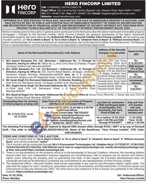 Authorized Officer: Mr. Dinesh Sawant Mobile No : 9867355652 / Mr. Kailash Choudhary Mobile No : 9820730811