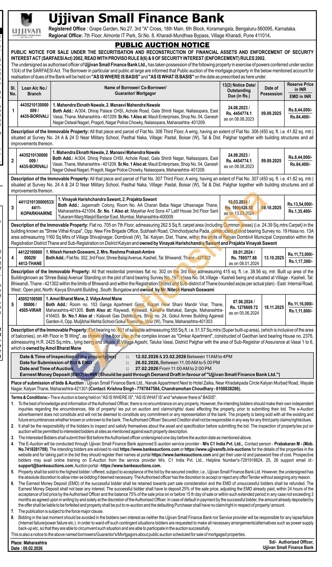 Description of the Immovable Property: All that piece and parcel of Flat No. 307 Third Floor, A wing, having an extent of Flat No. 307 (450 sq. ft. i.e. 41.82 sq. mtr.) situated at Survey No. 24 A & 24 D Near Military School, Pasthal Naka, Village: Pastal, Boisar (W), Tal & Dist. Palghar together with building structures and all Improvements thereon.