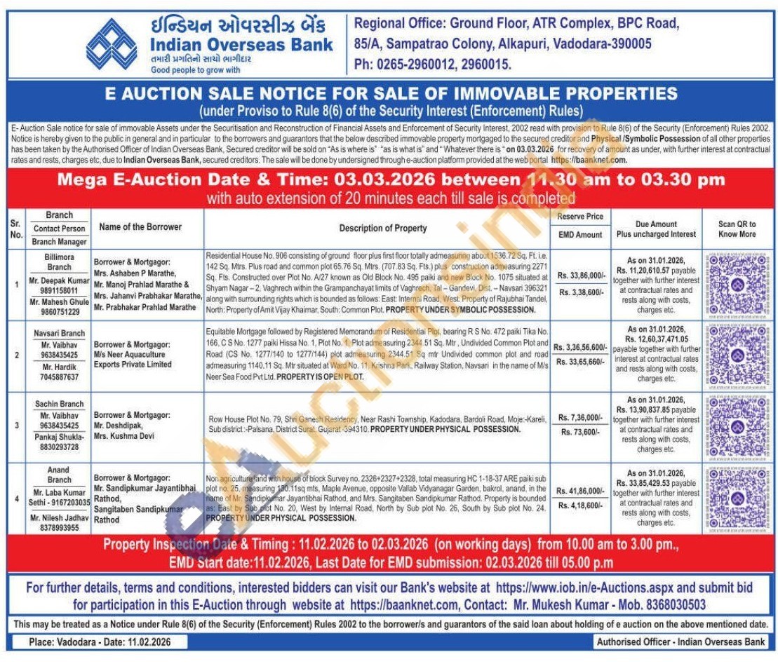 Non agriculture land with house of block Survey no. 2326+2327+2328, total measuring HC 1-18-37 ARE paiki sub plot no. 25, measuring 130.11sq mts, Maple Avenue, opposite Vallab Vidyanagar Garden, bakrol, anand, in the name of Mr. Sandipkumar Jayantibhai Rathod, and Mrs. Sangitaben Sandipkumar Rathod. Property is bounded as: East by Sub plot No. 20, West by Internal Road, North by Sub plot No. 26, South by Sub plot No. 24. PROPERTY UNDER PHYSICAL POSSESSION.