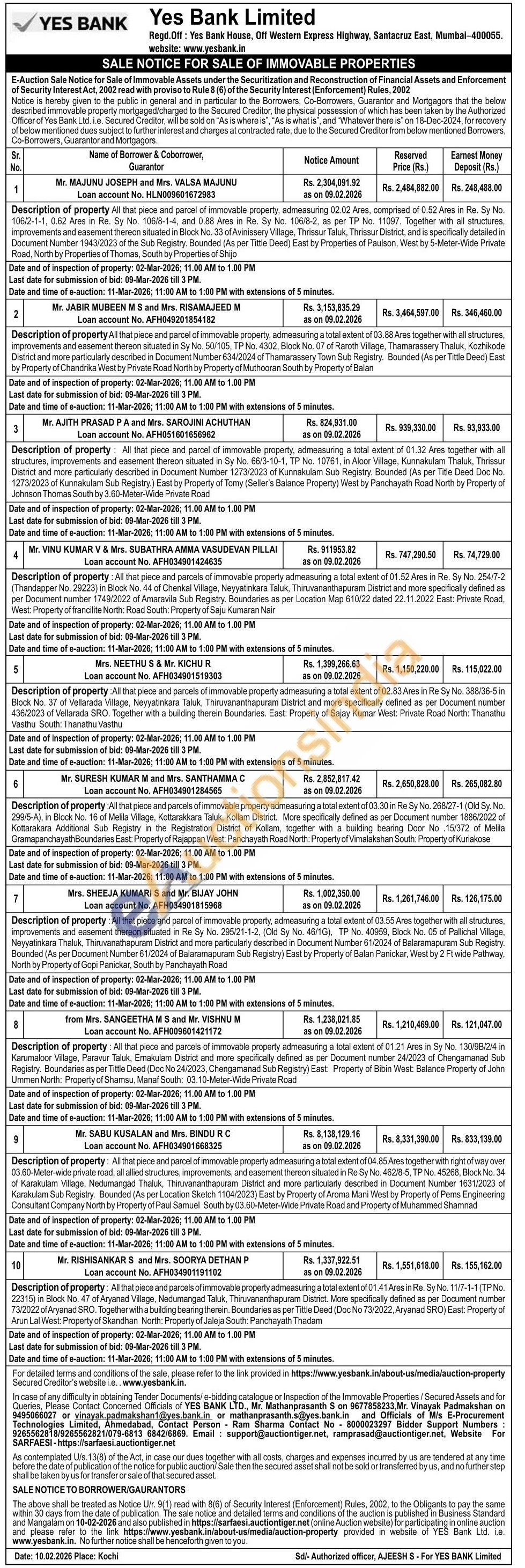 Description of property: All that piece and parcel of immovable property admeasuring a total extent of 04.85 Ares together with right of way over 03.60-Meter-wide private road, all allied structures, improvements, and easement thereon situated in Re Sy No. 462/8-5, TP No. 45268, Block No. 34 of Karakulam Village, Nedumangad Thaluk, Thiruvananthapuram District and more particularly described in Document Number 1631/2023 of Karakulam Sub Registry. Bounded (As per Location Sketch 1104/2023) East by Property of Aroma Mani West by Property of Pems Engineering Consultant Company North by Property of Paul Samuel South by 03.60-Meter-Wide Private Road and Property of Muhammed Shamnad