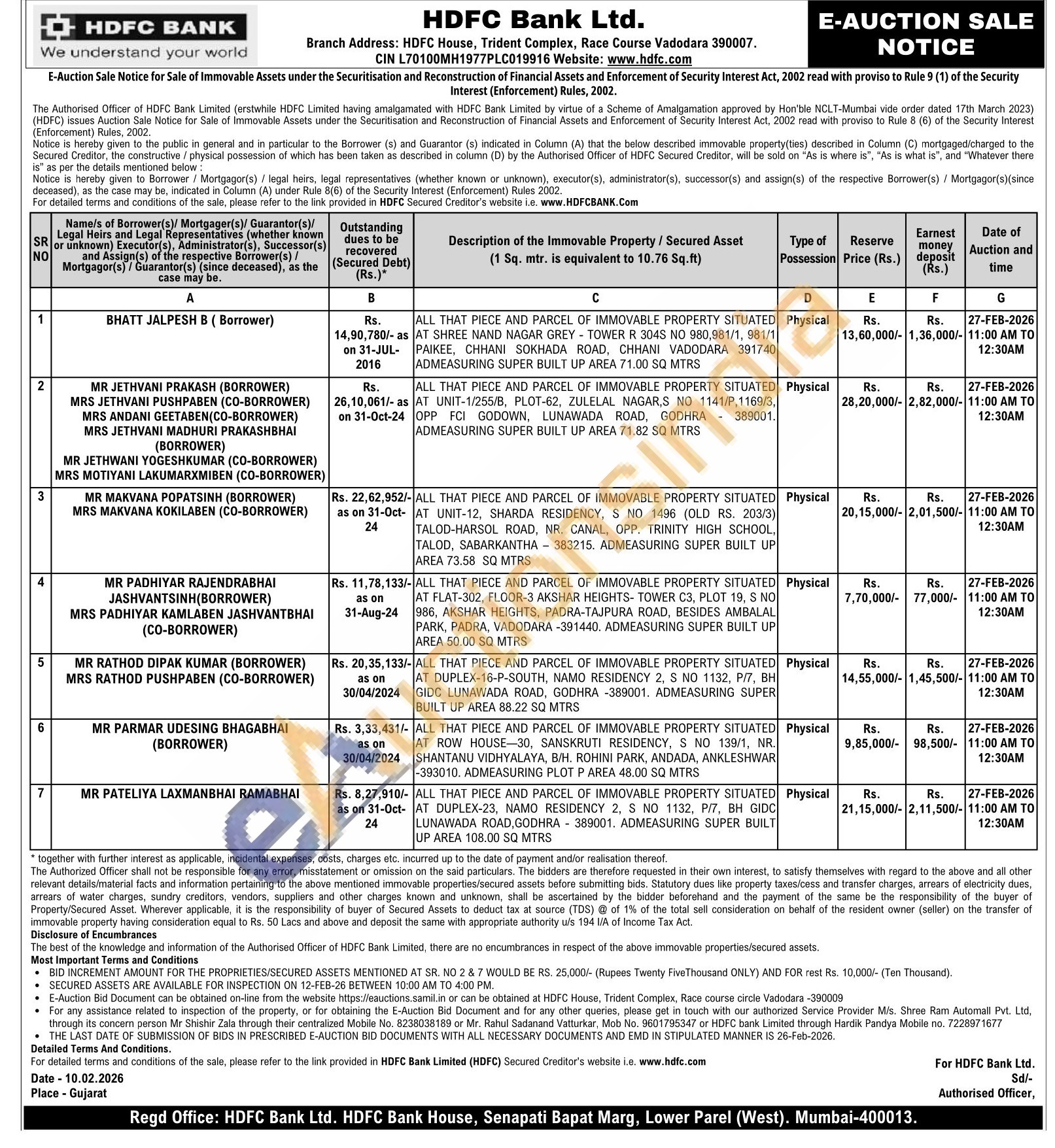 ALL THAT PIECE AND PARCEL OF IMMOVABLE PROPERTY SITUATED AT DUPLEX-16-P-SOUTH, NAMO RESIDENCY 2, S NO 1132, P/7, BH GIDC LUNAWADA ROAD, GODHRA -389001. ADMEASURING SUPER BUILT UP AREA 88.22 SQ MTRS