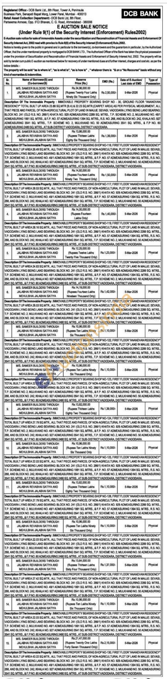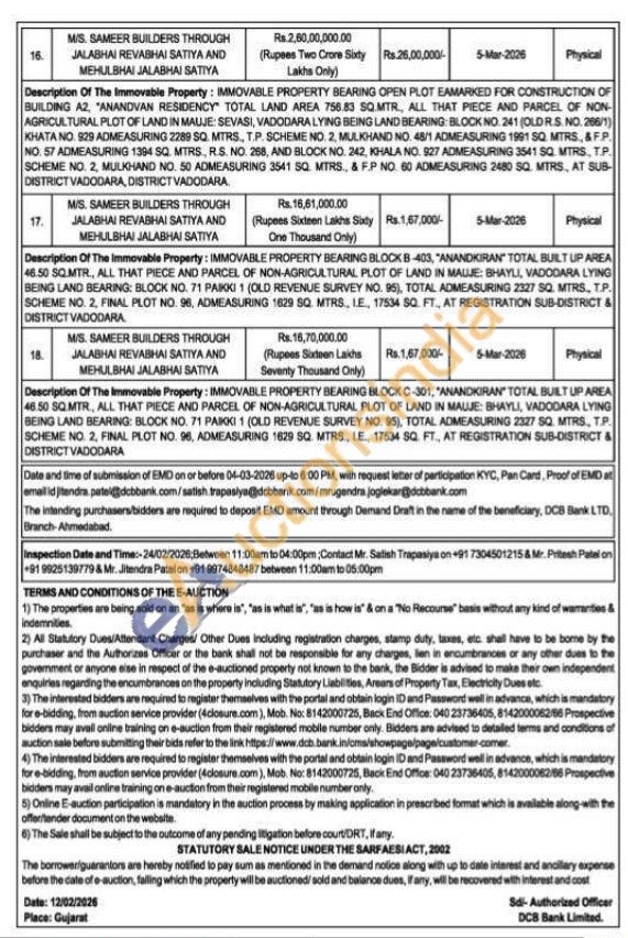 IMMOVABLE PROPERTY BEARING SHOP NO-130, FIRST FLOOR "ANANDVAN RESIDENCY" TOTAL BUILT UP AREA 43.22 SQ.MTR, ALL THAT PIECE AND PARCEL OF NON-AGRICULTURAL PLOT OF LAND IN MAUJE: SEVASI, VADODARA LYING BEING LAND BEARING: BLOCK NO. 241 (OLD R.S. NO. 266/1) KHATA NO. 929 ADMEASURING 2289 SQ. MTRS., T.P. SCHEME NO. 2, MULKHAND NO. 48/1 ADMEASURING 1991 SQ. MTRS., & F.P. NO. 57 ADMEASURING 1394 SQ. MTRS., R.S. NO. 268, AND BLOCK NO. 242, KHALA NO. 927 ADMEASURING 3541 SQ. MTRS., T.P. SCHEME NO. 2, MULKHAND NO. 50 ADMEASURING 3541 SQ MTRS & F.PNO.60 ADMEASURING 2480 SQ. MTRS, AT SUB-DISTRICT VADODARA DISTRICT VADODARA