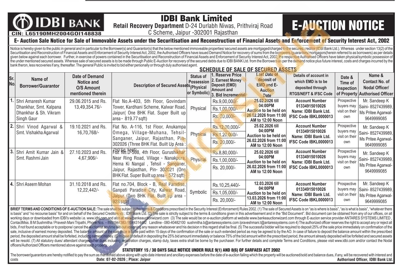 Mr. Sandeep K Saini-8527439989, Ms Pritee Agarwal-9649999085