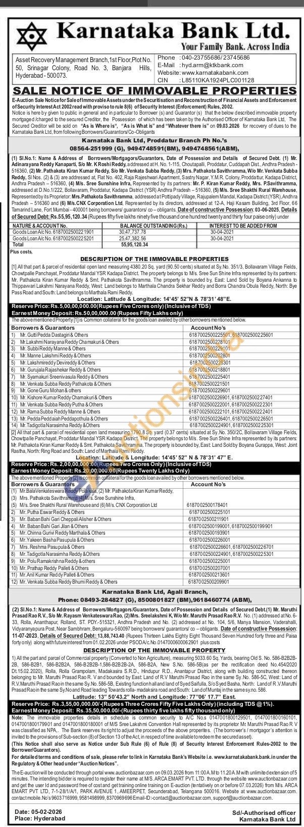 All the part and parcel of Commercial property (Converted to Non Agriculture), measuring 5033.60 Sq. Yards, bearing Old S. No. 586-82828-28, 586-B2B1, 586-B2B2A, 586-B2B2B-1,586-B2B2B-2A, 586-B2A, New S.No. 586-5B(as per the rectification deed No.454/2020 Dt.15.02.2020), Rolla, Rolla Grampolam, Madakasira S.R.D., Hindupur R.D., Anantapur District, along with building constructed thereon belonging to Mr. Maruthi Prasad Rao R. V and bounded by East: Land of R.V Maruthi Prasad Rao in the same Sy. No. 586-5C, West: Land of R.V. Maruthi Prasad Raoin the same Sy. No. 586-5B, Existing function hall and land of Syed Saifulla, S/oSyed Basha, North: Land of R.V.Maruthi Prasad Raoin the same Sy.No and Road leading Towards rolla-madaksira road and South: Land of Muntaj in the same syno. 586.
