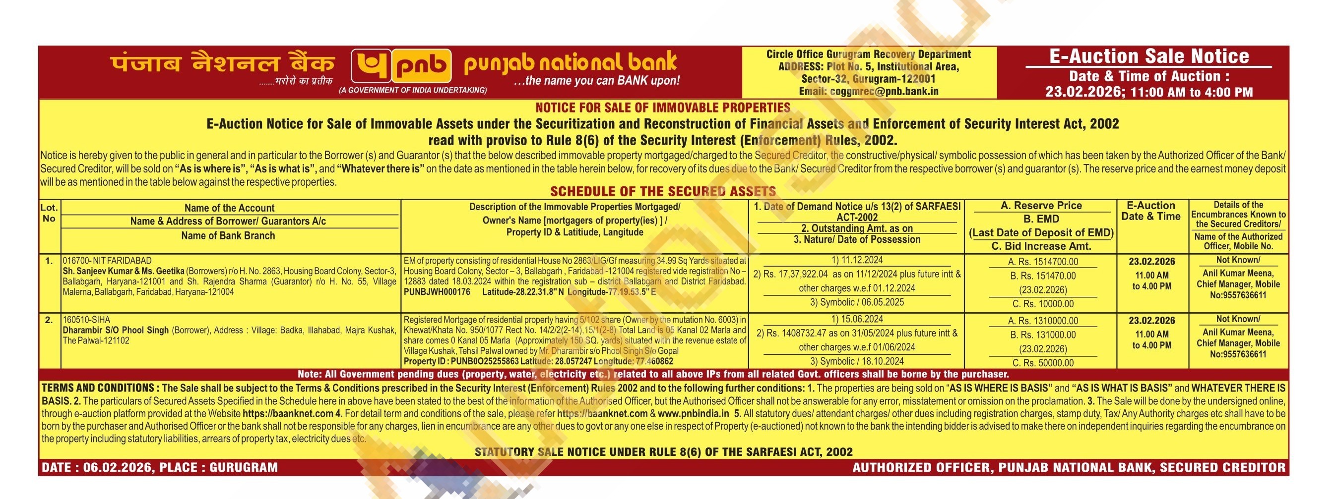 EM of property consisting of residential House No 2863/LIG/Gf measuring 34.99 Sq Yards situated at Housing Board Colony, Sector-3, Ballabgarh, Faridabad-121004 registered vide registration No-12883 dated 18.03.2024 within the registration sub-district Ballabgarh and District Faridabad. PUNBJWH000176 Latitude-28.22.31.8" N Longitude-77.19.53.5" E