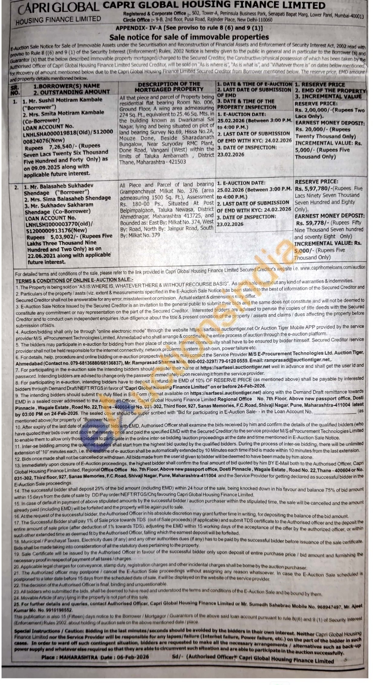 Mr. Sumedh Sahebrao Mobile No. 968947497 and Mr. Ajeet Kumar Mo. No. 9910198552.