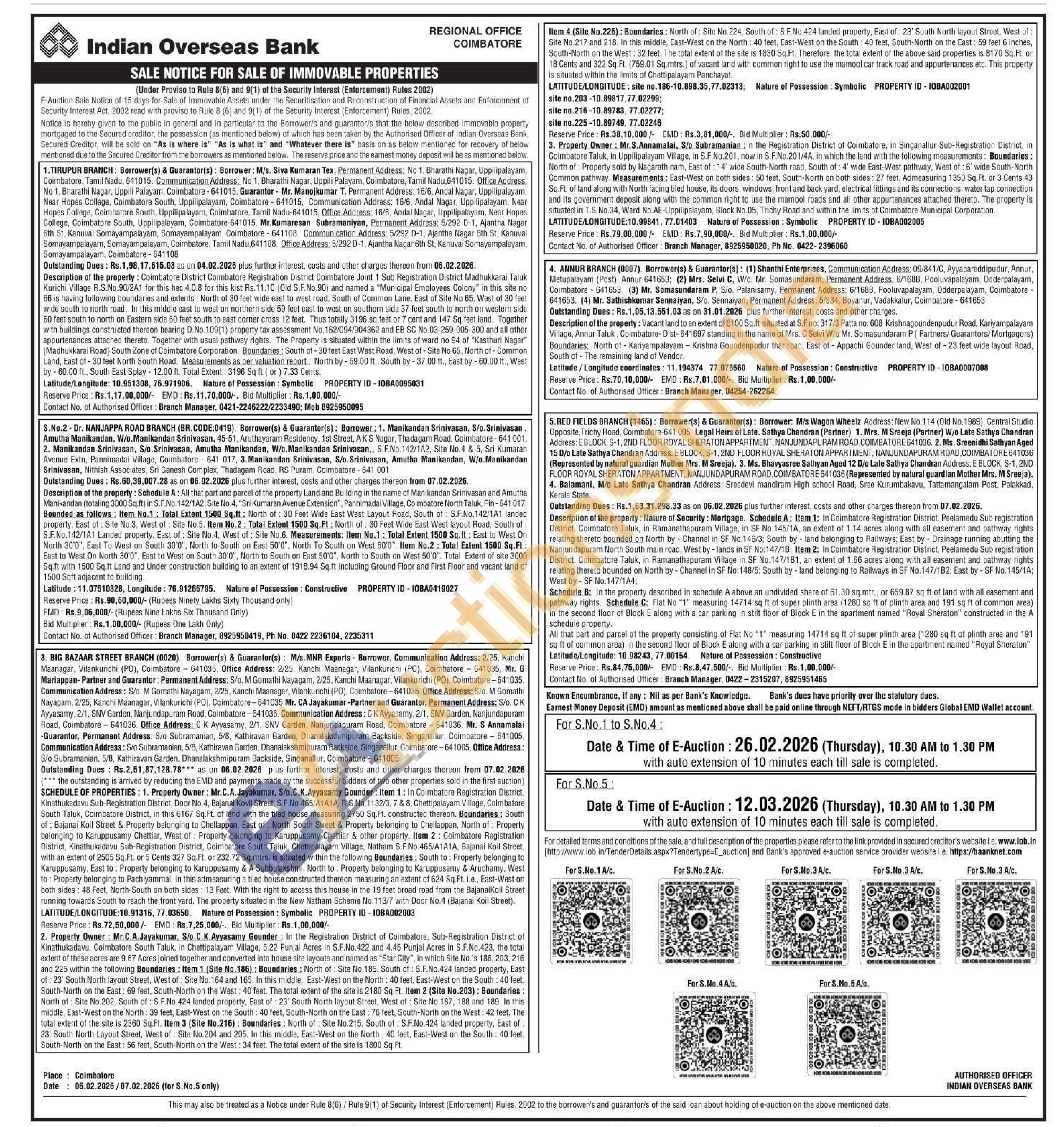 Description of the property: Vacant land to an extent of 6100 Sq.ft stated at & Fro 3172 Patta по 608 Krishvagourden pudur Road, Kartyampalayam Viitape. Annur Taluk, Coimbatore-Dist-841697 standing in the name of Mrs. C. Selvi Wo Mr. Sornsundaram P(Partners/Guarantors/Morigagars Boundaries: North of Kariyampalayam-Krishna Goundenpudur that road, East of Appachi Gounder land. West of 23 feet wide layout Road South of The remaining land of Vender