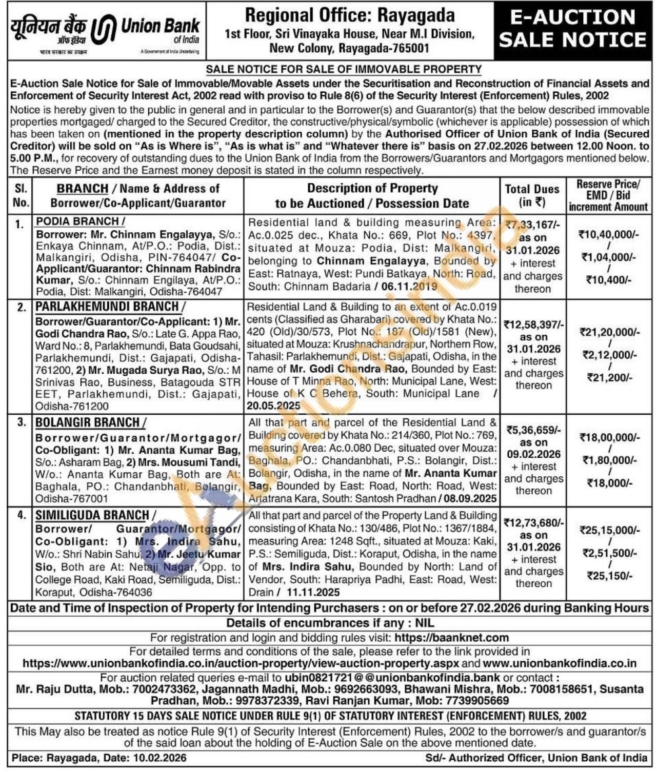 Mr. Raju Dutta Mobile No : 7002473362 / Jagannath Madhi Mobile No : 9692663093 / Bhawani Mishra Mobile No : 7008158651 / Susanta Pradhan Mobile No : 9978372339 / Ravi Ranjan Kumar Mobile No : 7739905669