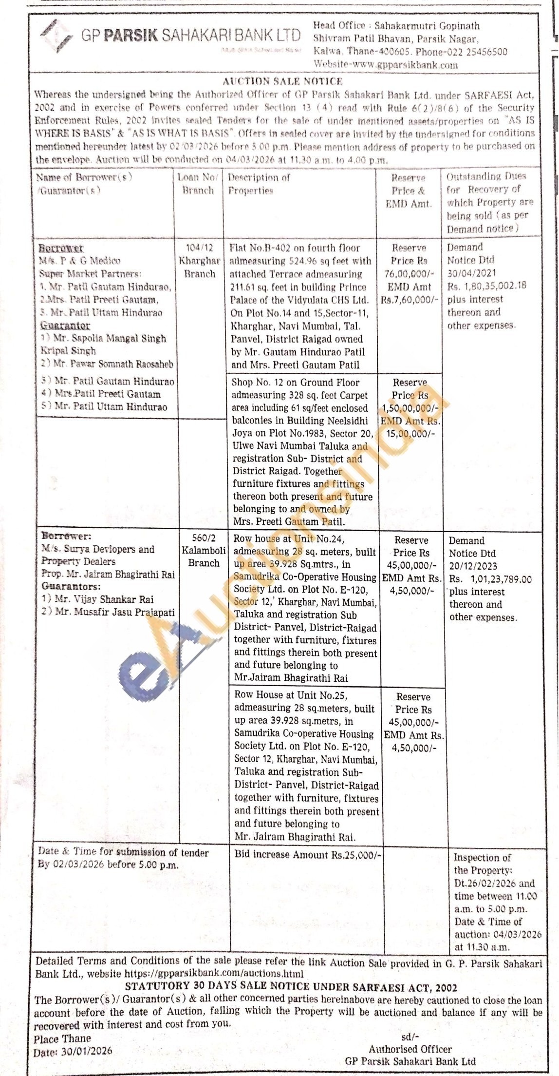 Shop No. 12 on Ground Floor admeasuring 328 sq. feet Carpet area including 61 sq/feet enclosed balconies in Building Neelsidhi Joya on Plot No.1983, Sector 20, Ulwe Navi Mumbai Taluka and registration Sub-District and District Raigad. Together furniture fixtures and fittings thereon both present and future belonging to and owned by Mrs. Preeti Gautam Patil