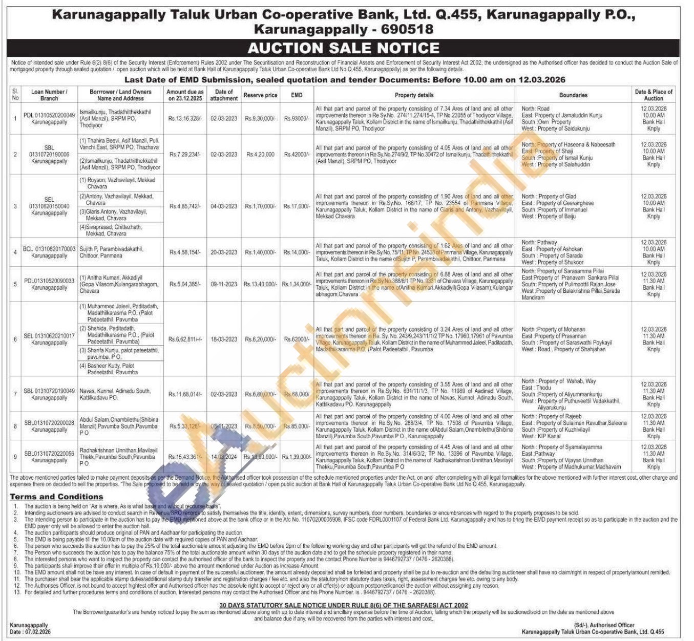 All that part and parcel of the property consisting of 6.88 Ares of land and all other improvements thereon in Re.Sy No.388/8/1 TP No. 9331 of Chavara Village, Karunagappally Taluk, Kollam District in the name ofAnitha Kumari, Akkadryili Gopa Vilasam) Kulangar abhagom. Chavara