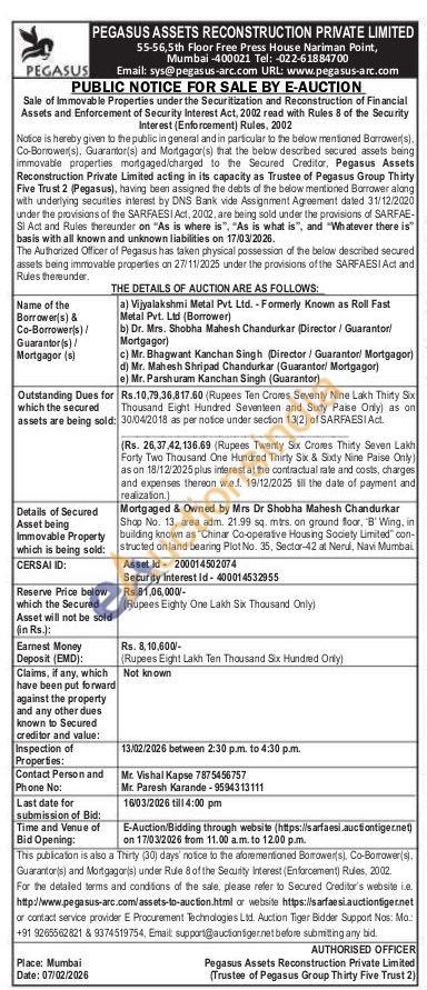 Shop No. 13, area adm. 21.99 sq. mtrs, on ground floor, "B' Wing, in building known as "Chinar Co-operative Housing Society Limited" con-structed onland bearing Plot No. 35, Sector-42 at Nerul, Navi Mumbai