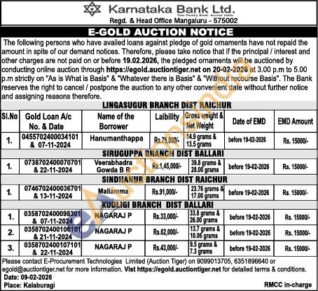 Karnataka Bank Gold Auctions Auction in Raichur