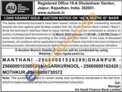 AU Small Finance Bank Gold Auctions Auction in Peddapalli
