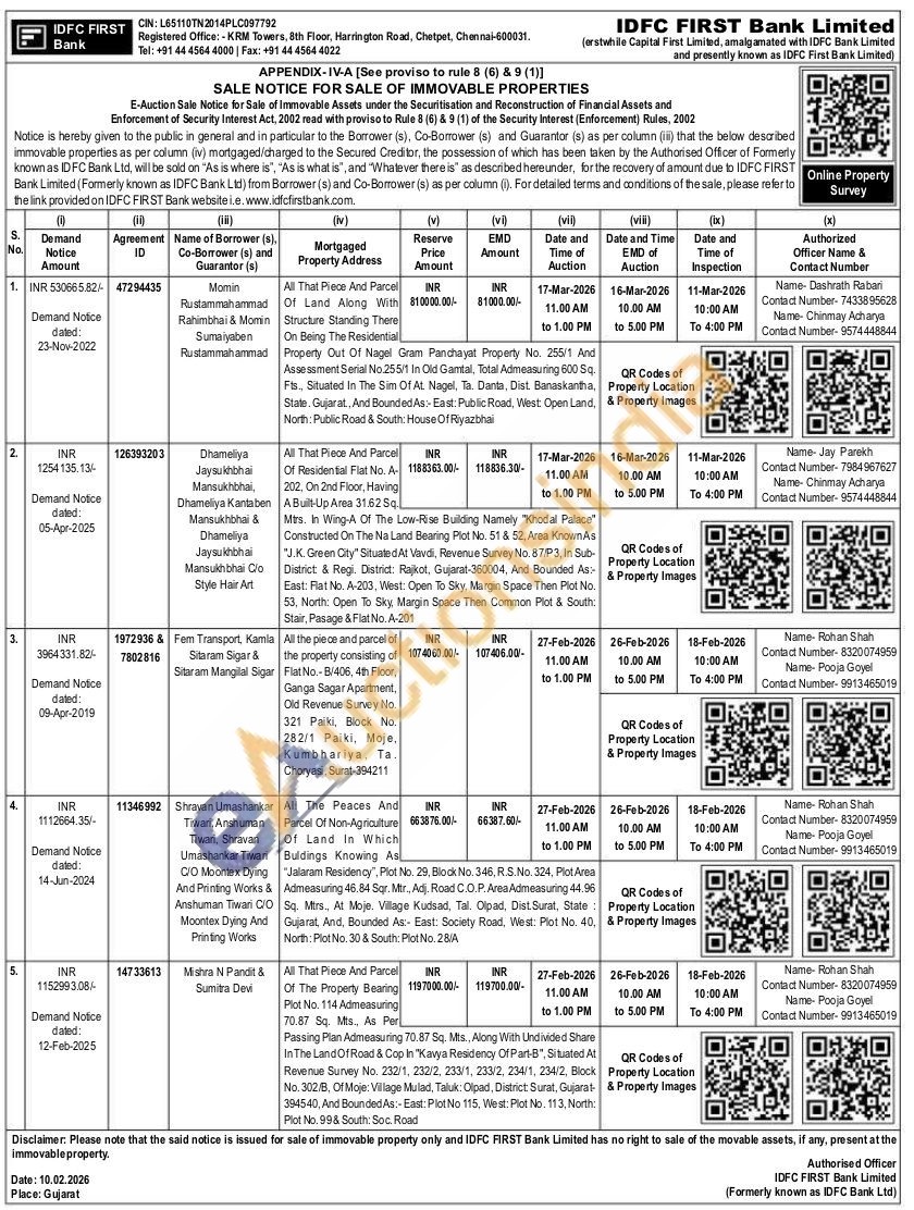 All That Piece And Parcel Of Residential Flat No. A 202, On 2nd Floor, Having A Built-Up Area 31.62 Sq Mtrs. In Wing-A Of The Low-Rise Building Namely "Khodal Palace" Constructed On The Na Land Bearing Plot No. 51 & 52, Area Known As "J.K. Green City" Situated At Vavdi, Revenue Survey No. 87/P3, In Sub-District & Regi. District: Rajkot, Gujarat-360004, And Bounded As:-East: Flat No. A-203, West: Open To Sky, Margin Space Then Plot No. 53, North: Open To Sky, Margin Space Then Common Plot & South: Stair, Pasage & Flat No. A-201