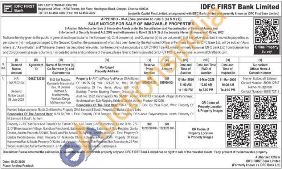 Property 2:-All That Piece And Parcel Of An Extent Of Ac. 1-40 Cents (0-5656 Hectors) Of Land D.No. 277-2. Of Bheemavaram Village, Gandluru Panchayat, Sattenapalli Mandal, Sattenapalli Sub-Registry, Guntur District, Andhra Pradesh-522403, Total Land Plot Area 6776 Sq. Yds, And Bounded As-East: Property Of Gadde Peddabbayee, West Property Of Tatikonda China Koteswara Rao, North: Property Of Katari Kaleswara Rao & South: Property Of Kotha Lakshmaiah:- Presently The Western Side Boundary is 25 Feet Wide Circar Road As Per Certificate Dt 27-11-2020, Issue By The Tahasildar, Sattenapali