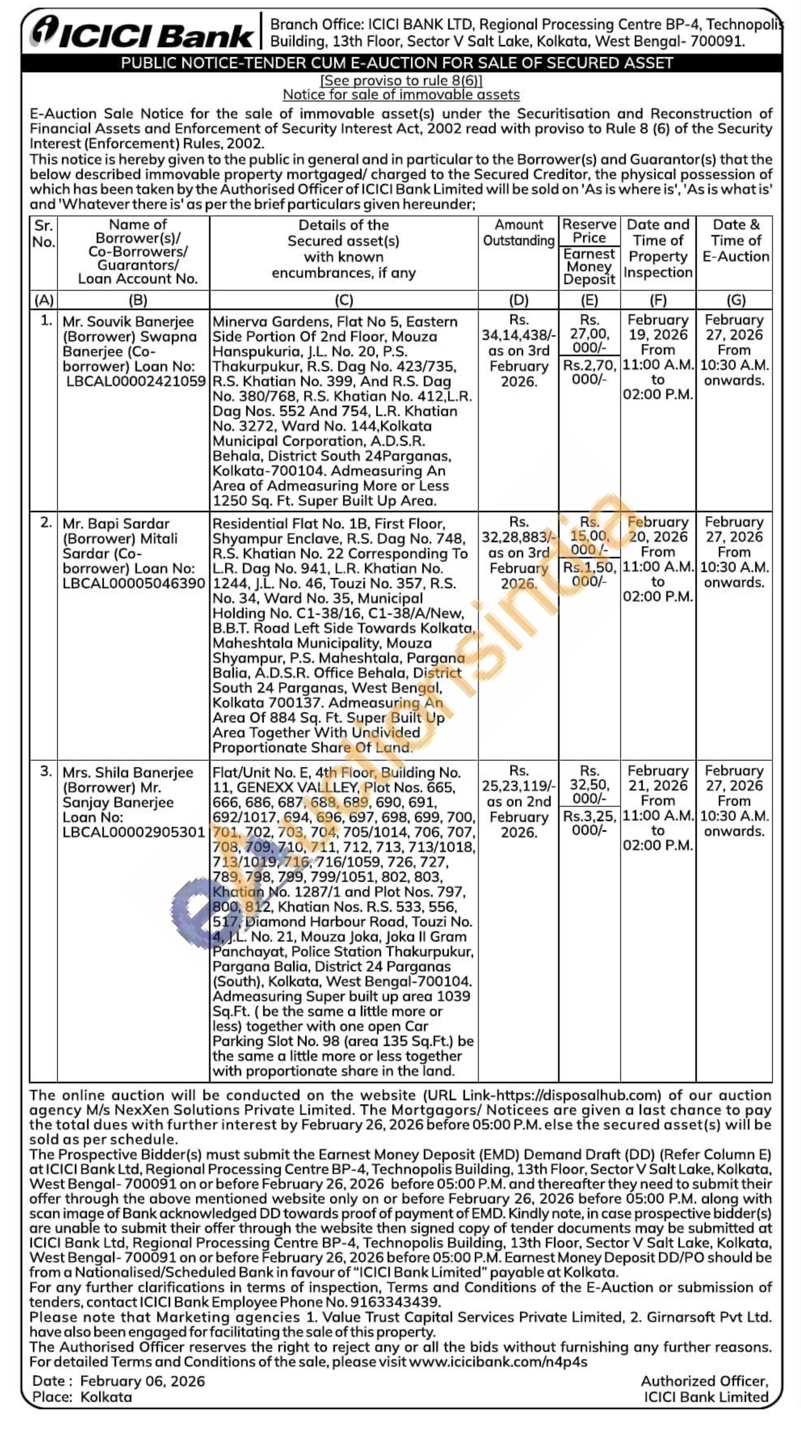 Minerva Gardens, Flat No 5, Eastern Side Portion Of 2nd Floor, Mouza Hanspukuria, J.L. No. 20, P.S. Thakurpukur, R.S. Dag No. 423/735, R.S. Khatian No. 399, And R.S. Dag No. 380/768, R.S. Khatian No. 412,L.R. Dag Nos. 552 And 754, L.R. Khatian No. 3272, Ward No. 144, Kolkata Municipal Corporation, A.D.S.R. Behala, District South 24 Parganas, Kolkata-700104. Admeasuring An Area of Admeasuring More or Less 1250 Sq. Ft. Super Built Up Area