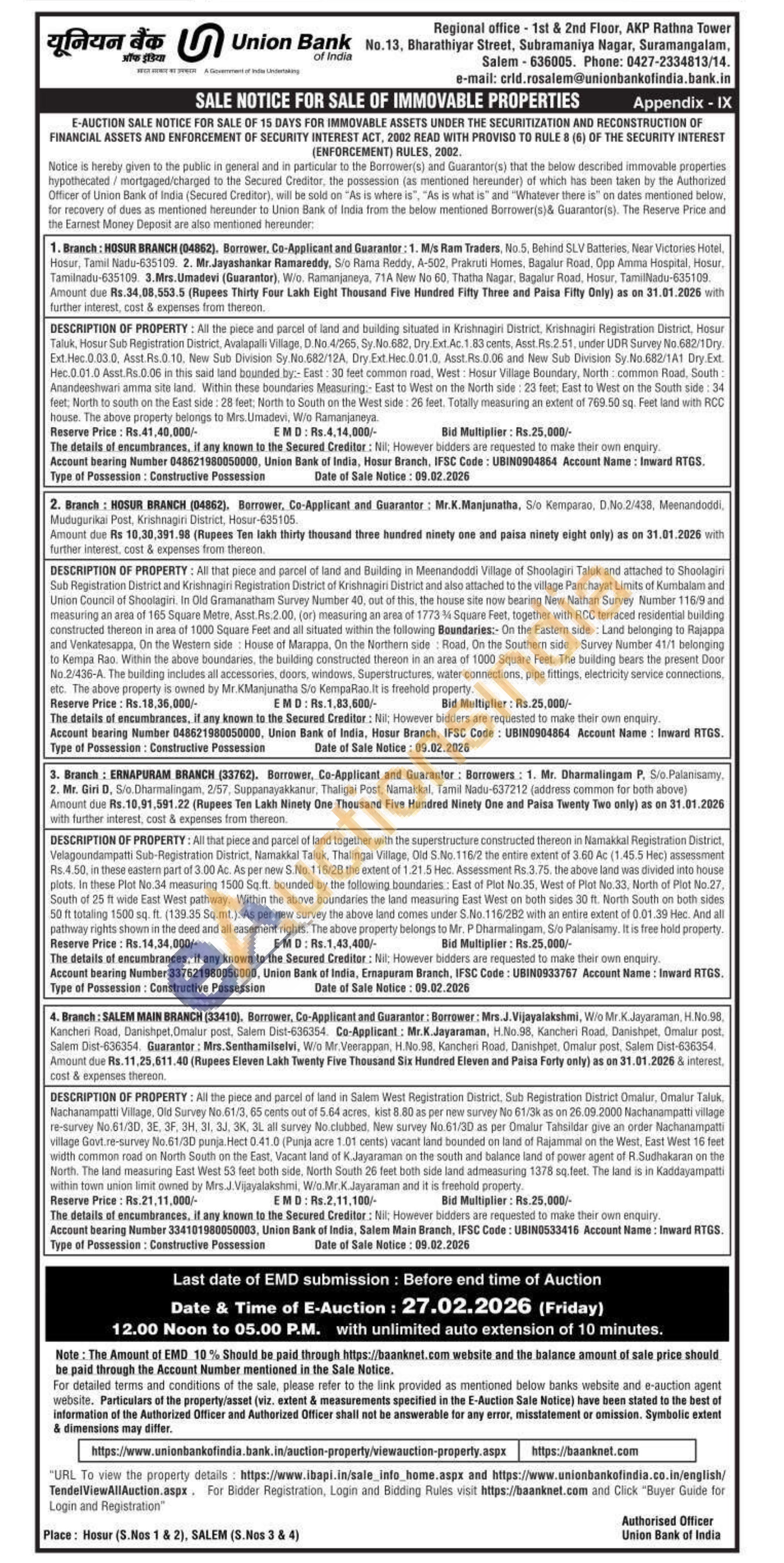 2) All that piece and parcel of land and Building in Meenandoddi Village of Shoolagiri Taluk and attached to Shoolagiri Sub Registration District and Krishnagiri Registration District of Krishnagiri District and also attached to the village Panchayat Limits of Kumbalam and Union Council of Shoolagiri. In Old Gramanatham Survey Number 40, out of this, the house site now bearing New Nathan Survey Number 116/9 and measuring an area of 165 Square Metre, Asst. Rs.2.00, (or) measuring an area of 1773 % Square Feet, together with RCC terraced residential building constructed thereon in area of 1000 Square Feet and all situated within the following Boundaries:- On the Eastern side: Land belonging to Rajappa and Venkatesappa, On the Western side: House of Marappa, On the Northern side: Road, On the Southern side: Survey Number 41/1 belonging to Kempa Rao. Within the above boundaries, the building constructed thereon in an area of 1000 Square Feet. The building bears the present Door No.2/436-A. The building includes all accessories, doors, windows, Superstructures, water connections, pipe fittings, electricity service connections, etc. The above property is owned by Mr.KManjunatha S/o KempaRao.It is freehold property