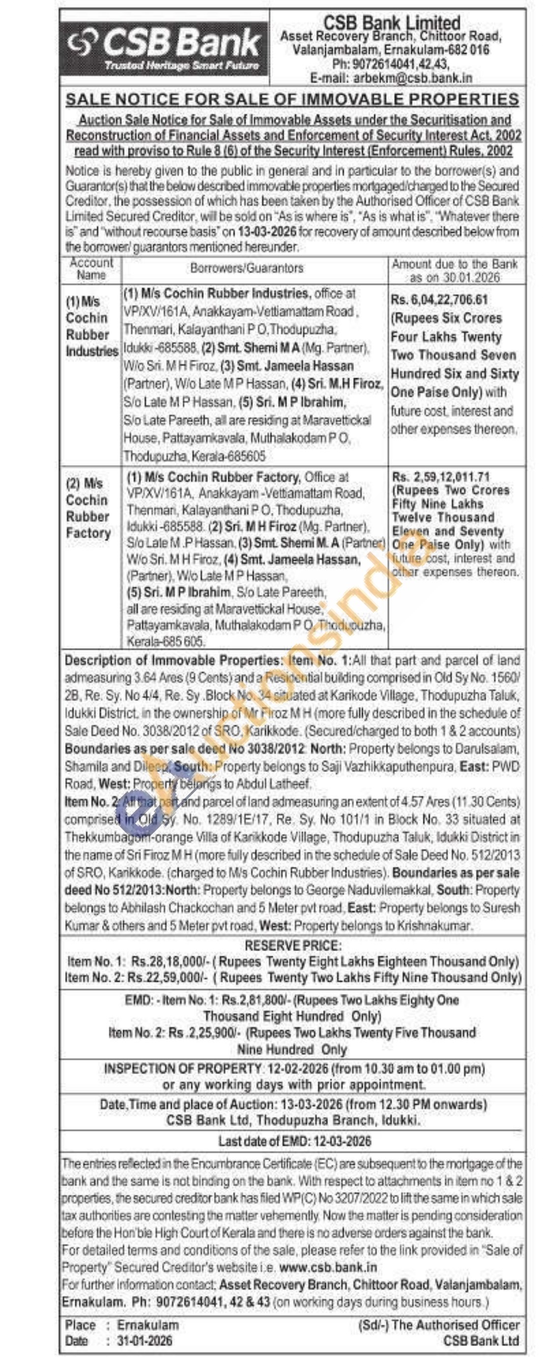 1:All that part and parcel of land admeasuring 3.64 Ares (9 Cents) and a Residential building comprised in Old Sy No. 1560/28, Re. Sy. No 4/4, Re. Sy. Block No. 34 situated at Karikode Village, Thodupuzha Taluk, Idukki District, in the ownership of Mr Firoz MH (more fully described in the schedule of Sale Deed No. 3038/2012 of SRO, Karikkode. (Secured/charged to both 1 & 2 accounts) Boundaries as per sale deed No 3038/2012: North: Property belongs to Darulsalam, Shamila and Dileep, South: Property belongs to Saji Vazhikkaputhenpura, East: PWD Road, West: Property belongs to Abdul Latheef.