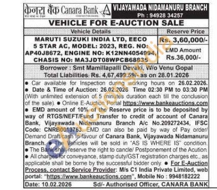 MARUTI SUZUKI INDIA LTD, EECO 5 STAR AC, MODEL: 2023, REG. NO: AP40J8672, ENGINE NO: K12NN4054994, CHASIS NO: MA3JDT08WPCB68835