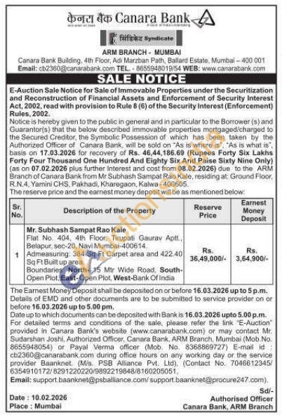 Mr. Subhash Sampat Rao Kale : Flat No. 404, 4th Floor, Tirupati Gaurav Aplt, Belapur, sec-20, Navi Mumbai-400614.