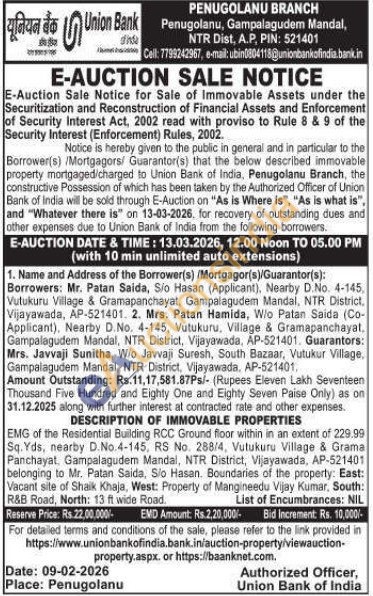 EMG of the Residential Building RCC Ground floor within in an extent of 229.99 Sq. Yds, nearby D.No.4-145, RS No. 288/4, Vutukuru Village & Grama Panchayat, Gampalagudem Mandal, NTR District, Vijayawada, AP-521401 belonging to Mr. Patan Saida, Sio Hasan. Boundaries of the property: East: Vacant site of Shaik Khaja, West: Property of Mangineedu Vijay Kumar, South: R&B Road, North: 13 ft wide Road