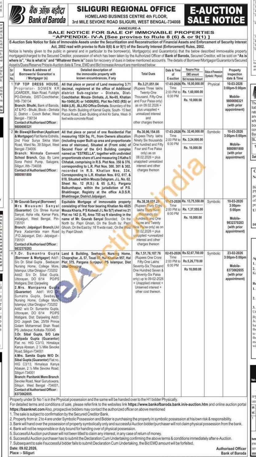 All that piece or parcel of one Residential Flat measuring 1024 Sq. Ft., from Owners allocation (including super Built up area and proportionate area of staircase), Situated at Front side) of Second Floor of the G+3 Bullding complex named as "ESTRELLA", together with undivided proportion rtionate share of Land measuring 3 Katha 5 Chhatak, comprising in R.S. Plot Nos. 350 & 376, corresponding to L.R. Plot Nos. 300, 301 & 302, recorded in R.S. Khatian Nos. 354, Corresponding to L.R. Khatian Nos. 612, 617, A 618, Situated within Mouza Dabgram, J.L. No. 02, Sheet No. 12 (RS) & 65 (LR), Pargana Baikunthapur, within the jurisdiction of P.S. Bhaktinagar, Registry at the office ADSR. Bhaktinagar, District Jalpaiguri,