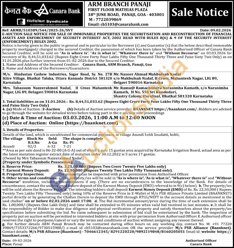 Details of the land, which is uncultivated for commercial purposes, in village Asundi kobli Soudatti, hobli,