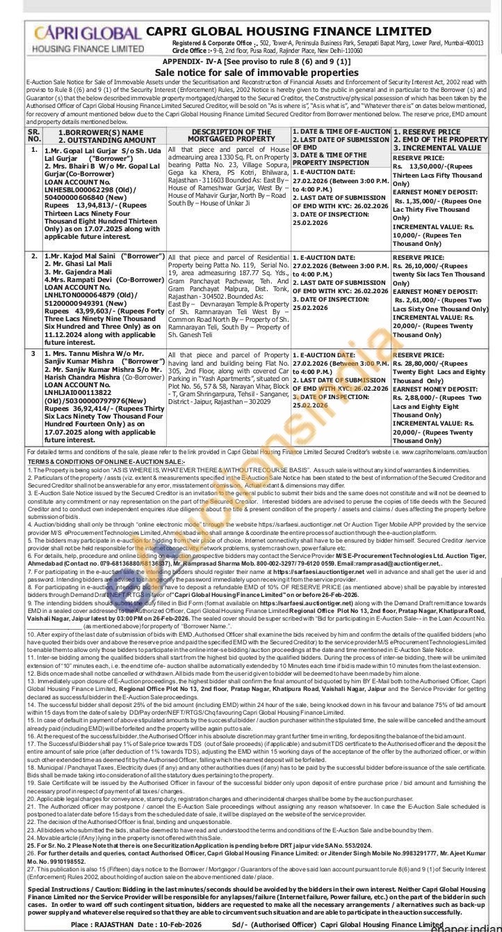All that piece and parcel of Residential Property being Patta No. 119, Serial No. 19, area admeasuring 187.77 Sq. Yds., Gram Panchayat Pachewar, Teh. And Gram Panchayat Malpura, Dist. Tonk, Rajasthan-304502. Bounded As: East By- Devnarayan Temple & Property of Sh. Ramnarayan Tell West By-Common Road North By Property of Sh. Ramnarayan Tel, South By Property of Sh. Ganesh Tell