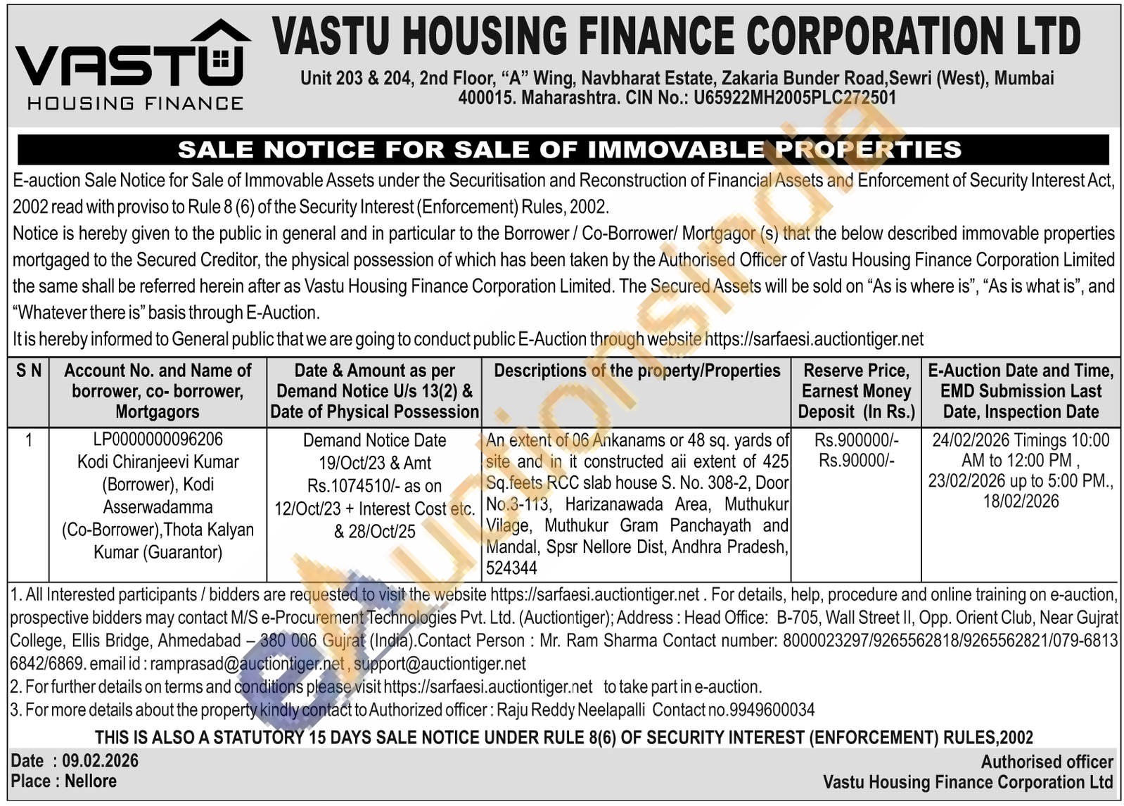 An extent of 06 Ankanams or 48 sq. yards of site and in it constructed aii extent of 425 Sq.feets RCC slab house S. No. 308-2, Door Vilage, Muthukur Gram Panchayath and Mandal, Spsr Nellore Dist, Andhra Pradesh, 524344 No.3-113, Harizanawada Area, Muthukur