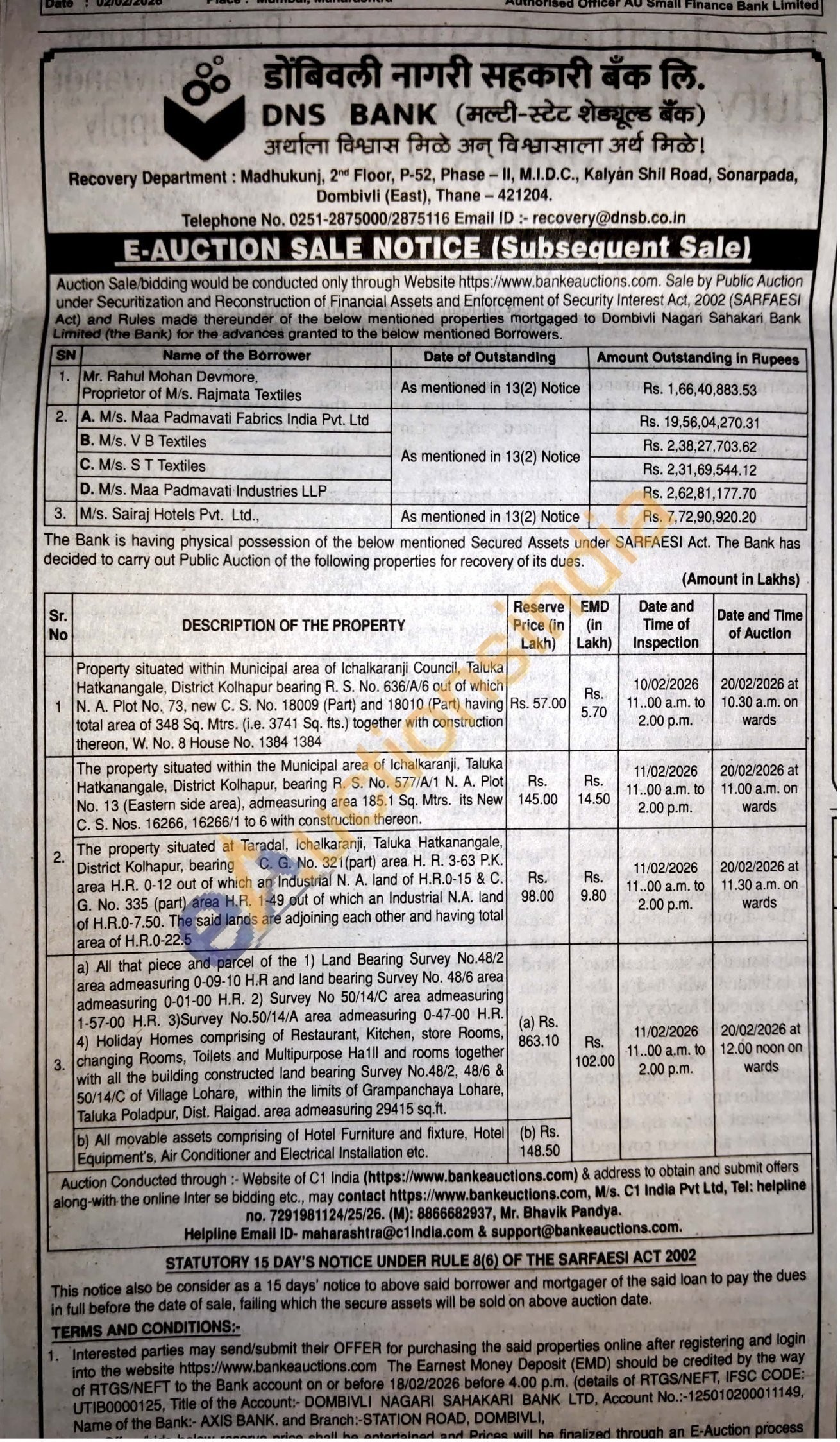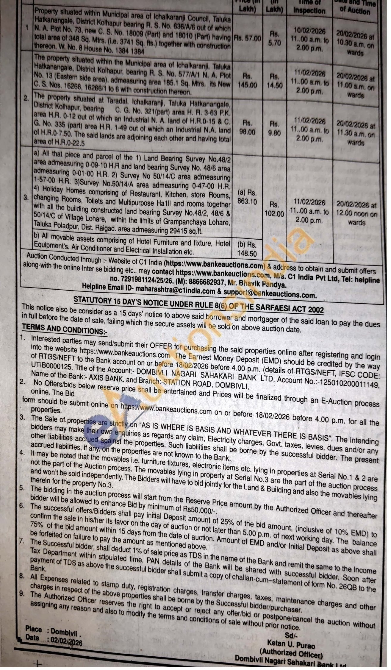 Property situated within Municipal area of Ichalkaranji Council, Taluka Hatkanangale, District Kolhapur bearing R. S. No. 636/A/6 out of which N. A. Plot No. 73, new C. S. No. 18009 (Part) and 18010 (Part) having total area of 348 Sq. Mtrs. (i.e. 3741 Sq. fts.) together with construction thereon, W. No. 8 House No. 1384 1384