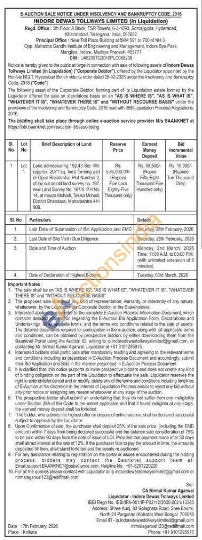Land adrneasuring 192.43 Sqr Mo (approx. 2071 sq. feet) forming part of Open Residential Plot Number 2. of lay out on old land survey no. 167. new Land Survey No. 167/4. PH No. 14, of mauza Mohadi. Taluka Mohadi District Bhandara, Maharashtra 441 606