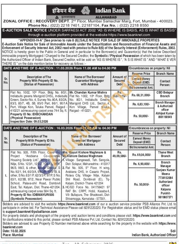 2) Flat No. 505, Fifth Floor, Case Rio Project "Arabiana Co-operative Housing Society Ltd.", Wing H, Mauje Nije, S No. 123/1, 123/2, 108/14, 96/1, 96/3, 98/2, & other, Mauje Ghesar, S No. 92/1, 94, 60/3/A, 99/3/B, 113/1B, 113/1B, & 1. other, S No. 63/1 P, 62/3/3 P, 97/P, S No. 63/1, 62/3B, 97/2, Near Pawar Public School, Palava-shil Road, Dombivli East, Tal. Kalyan, Dist. Thane-421204. admeasuring carpet area 584 Sq. ft