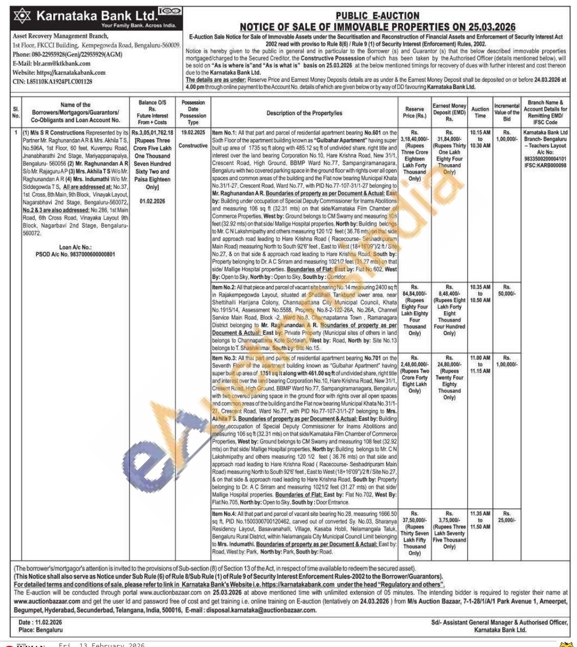 Item No.2: All that piece and parcel of vacant site bearing No.14 measuring 2400 sq ft in Rajakempegowda Layout, situated at Shettihalli Tankbund lower arma, near Shettihalli Harijana Colony, Channapattana City Municipal Council, Khata No.1915/14, Assessment No.5588, Property No. 8-2-122-26A, No.26A, Channel Service Main Road, Block -2. Wand No 8, Channapatana Town, Ramanagara District belonging to Mr. Raghunandan A R. Boundaries of property as per Document & Actual: East by: Private Property (Municipal sites of others in land belongs to Channapattana Kote Siddalah, West by: Road, North by: Site No. 13 belongs to T. Shashikumar, South by: Site No. 15.