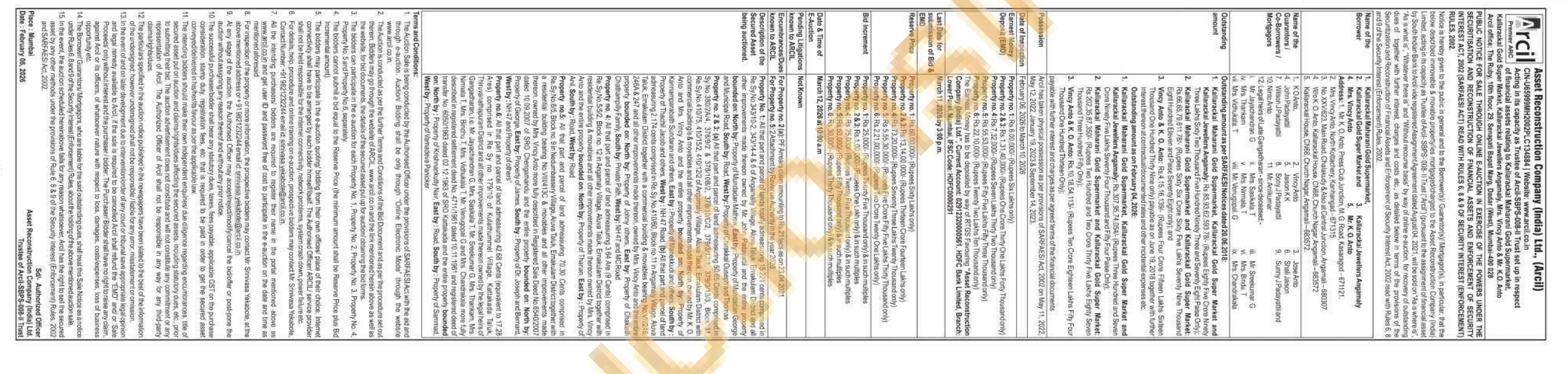 Property No. 1: All that part and parcel of lands totally admeasuring 15.221 cents comprised in Re.Sy No.343/10-2, 343/14-4 & 6 of Angamally Village, Aluva Taluk, Ernakulam District and all other improvements made thereon owned by Mr. John Padayattil and the entire property bounded on: North by: Property of Mundadan Mathew, East by: Property of Mundadan George and Municipal Road, South by: Road, West by: Property of Chirakkal Ouseph and Thomas