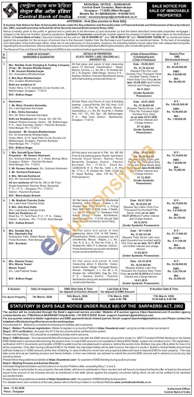 All that piece and parcel of land measuring about 5 Decimal, Classi fication Bastu, Vilage-Panagarh Bazar, Mouza-Panagarh, J. L. No. 85, L. R. Khatian No. 1483(1985), Dag No. 333. P. S. Kanksa, District Paschim Bardhaman along with residential house constructed thereon