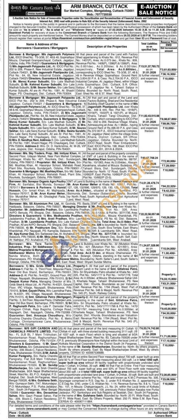 EMT of Land & Building in the name of Mr. Prabhuram Dey over Khata No. 309/126, Plot No.: 326, Area: Ac.0.12dec. & Plot No.: 327/1736, Area: Ac.0.06dec., Mouza: Kharidchak, PS: Bhogarai, PS No. 42, Dist.: Balasore, Odisha, Total Area: Ac.0.18dec. Plot No. 326 is bounded by-North: Sitaram Dey, South: Siva Temple, East: Bhanu Sith & Laxmikanta Sith, West: Road, Plot No. 327/1736 is bounded by-North: Sitaram Dey, South: Self, East: Laxmikanta Sith, West: Anabadi.