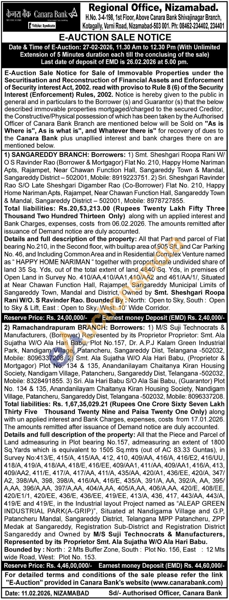 All that the Piece and Parcel of Land admeasuring in Plot bearing No.157, admeasuring an extent of 1800 Sq. Yards which is equivalent to 1505 Sq.mtrs (out of AC 83.33 Guntas), in Survey No:413/E, 415/A, 415/AA, 412, 410, 409/AA, 416/A, 416/E2, 416/UU, 418/Α, 419/A, 418/AA, 418/E, 416/ΕΕ, 409/AA1, 411/AA, 409/AA1, 416/A, 413, 409/AA2, 411/E, 417/A, 417/AA, 411/A, 435/AA, 420/A1, 436/ΕΕ, 420/A, 347/A2, 398/AA, 398, 398/A, 416/AA, 416/E, 435/A, 391/A, AA, 392/A, ΑΑ, 395/Α,ΑΑ, 396/Α,ΑΑ, 397/A,AA, 404/A,AA, 405/Α,ΑΑ, 406/Α,ΑΑ, 420/E, 408/ΕΕ, 420/E1/1, 420/ΕΕ, 436/E, 436/ΕΕ, 419/ΕΕ, 413/A, 436, 417, 443/AA, 443/A, 419/E and 419/E, in the Industrial layout Project named as "ALEAP GREEN INDUSTRIAL PARK(A-GRIP)", Situated at Nandigama Village and G.P, Patancheru Mandal, Sangareddy District, Telangana MPP Patancheru, ZPP Medak at Sangareddy, Registration Sub-District and Registration District