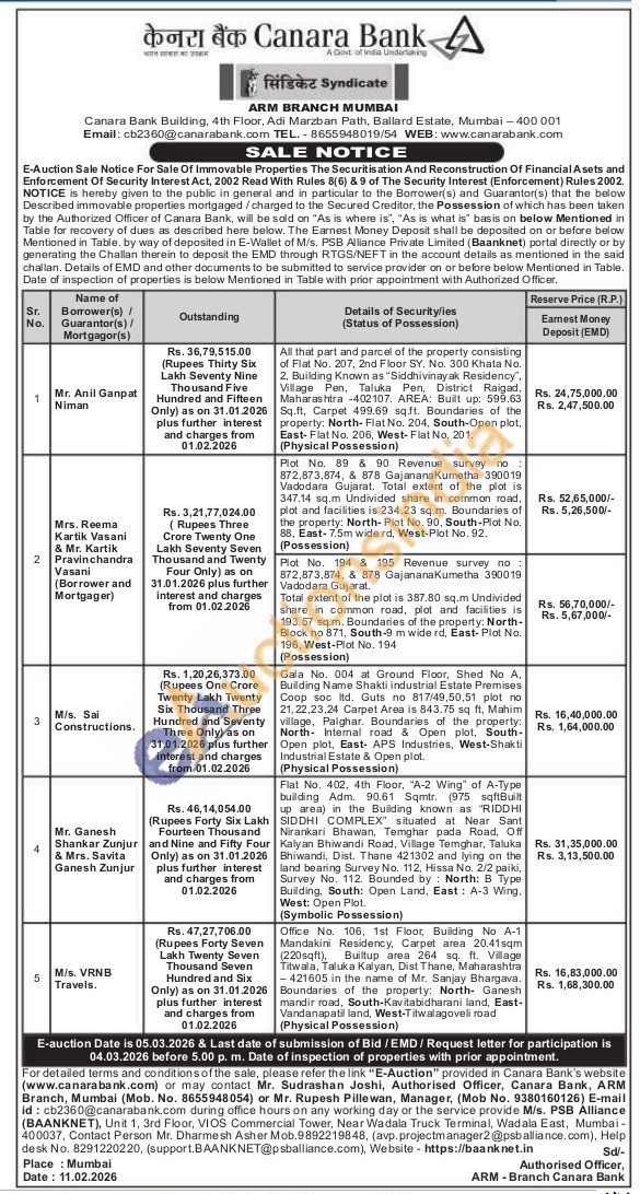 Office No. 106, 1st Floor Building No A-1 Mandakini Residency, Carpet area 20.41sqm (220sqft), Builtup area 264 sq. ft. Village Titwala, Taluka Kalyan, Dist Thane, Maharashtra -421605 in the name of Mr. Sanjay Bhargava. Boundaries of the property: North Ganesh mandir road, South-Kavitabidharani land, East-Vandanapatil land, West-Titwalagoveli road (Physical Possession)