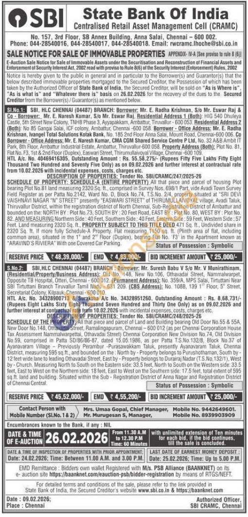 DESCRIPTION OF PROPERTIES: Tender No. SBI/CRAMC/247/2025-26
