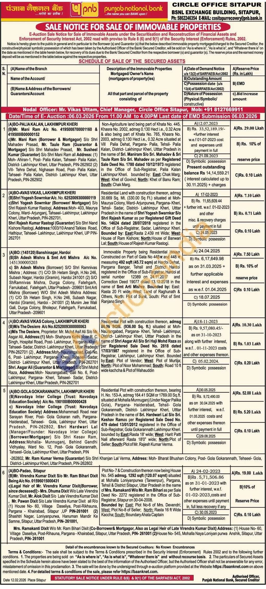 Contact Nodal Officer: Mr. Vikas Uttam, Chief Manager, Circle Office Sitapur, Mob: +91 8127669911