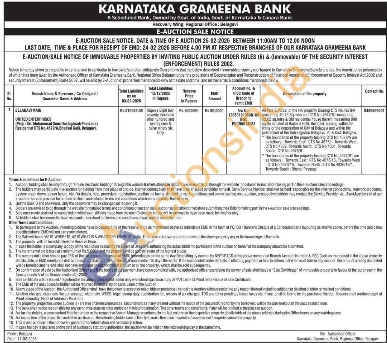 All Part & Parcel of the NA property Bearing CTS No.4678/A measuring 40.13 Sq.mtrs and CTS No. 4677/81 measuring 52.02 sq.mtrs & Old residential house therein measuring 980 sq.fts situated at Badakal Galli, Belagavi, coming within the limits of the corporation of City of Belagavi and within the jurisdiction of the Sub-registrar Belagavi. Tal & Dist: Belagavi, The boundaries of the property bearing CTS No. 4678/A are as follows: Towards East: CTS No.4677/b, Towards West: CTS No.4362, Towards North: CTS No.4361, Towards South: CTS No.4678/8